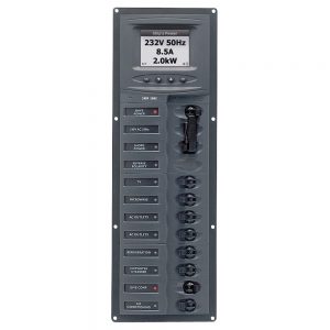 BEP AC Circuit Breaker Panel w/Digital Meters, 8SP 2DP AC230V ACSM Stainless Steel Vertical
