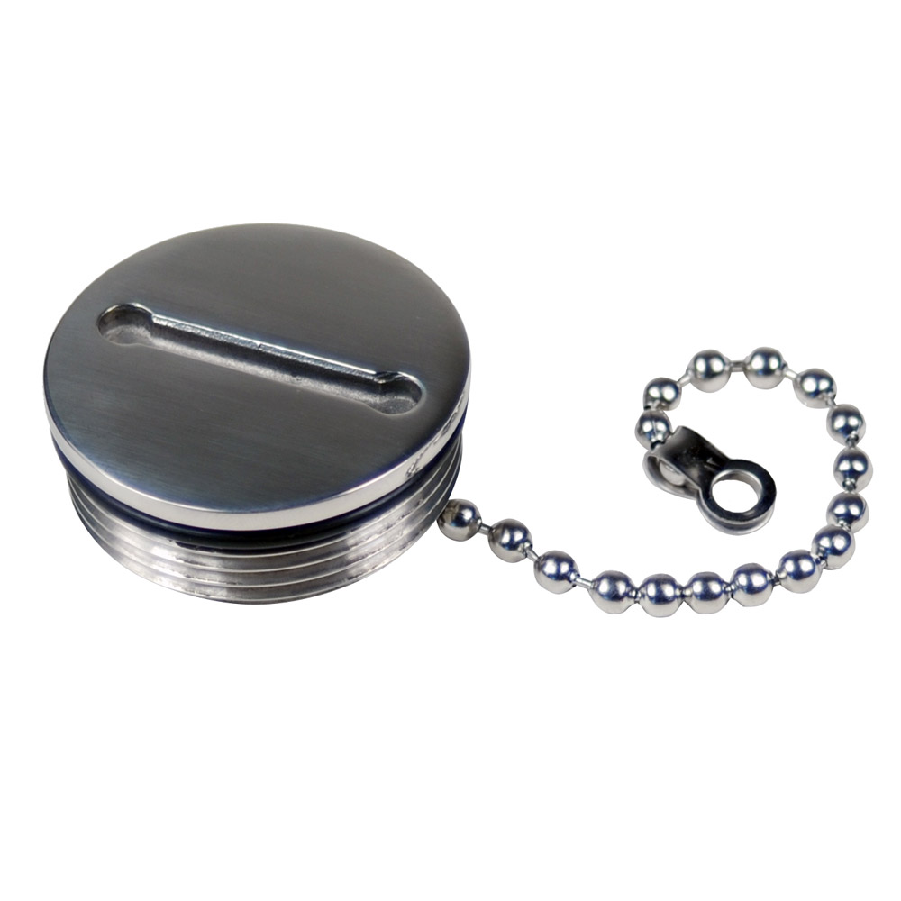 These Hose Deck Fills feature a slotted cap which requires a key to open and close for extra security. 1-1/2” hose deck fill cap diameter 1-7/8″, thread pitch 11-1/2 NPSM straight. 2″ hose deck fill cap diameter 2-1/8″, thread pitch 11-1/2 NPSM straight. All fills and replacement caps (except waste) include attachment chain. Constructed of corrosion resistant investment cast 316 stainless steel. Installs with three #10 FH fasteners (not included). USCG regulations require bonding wire to prevent sparking.